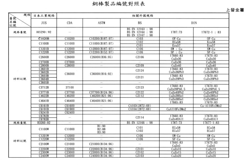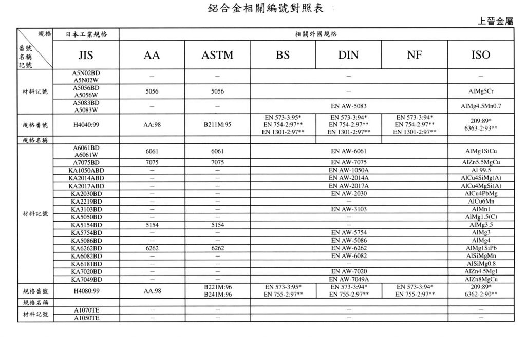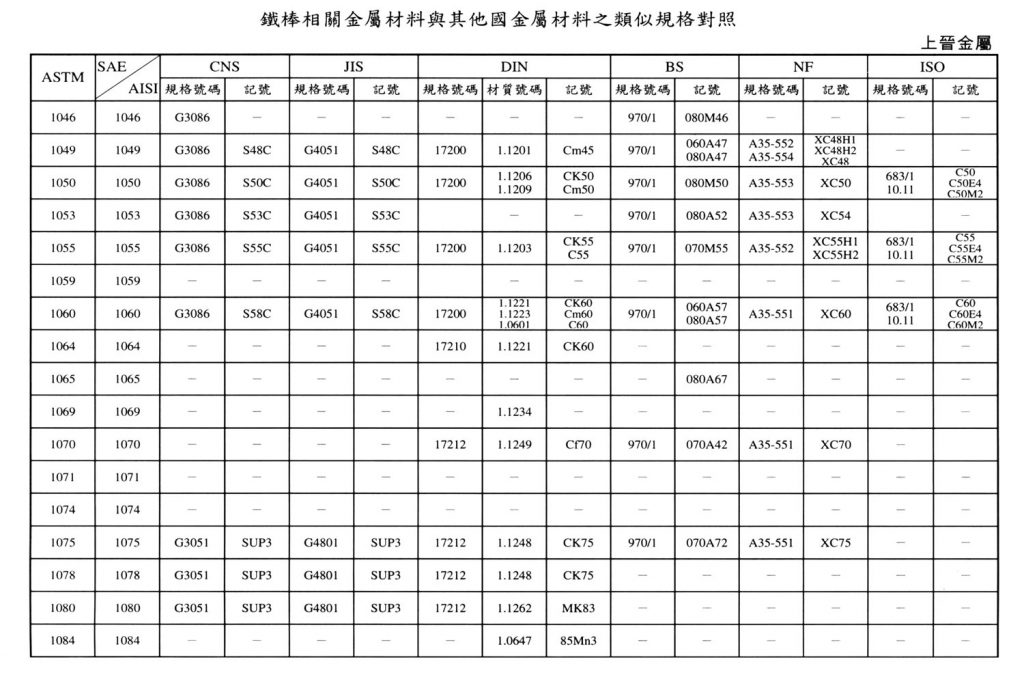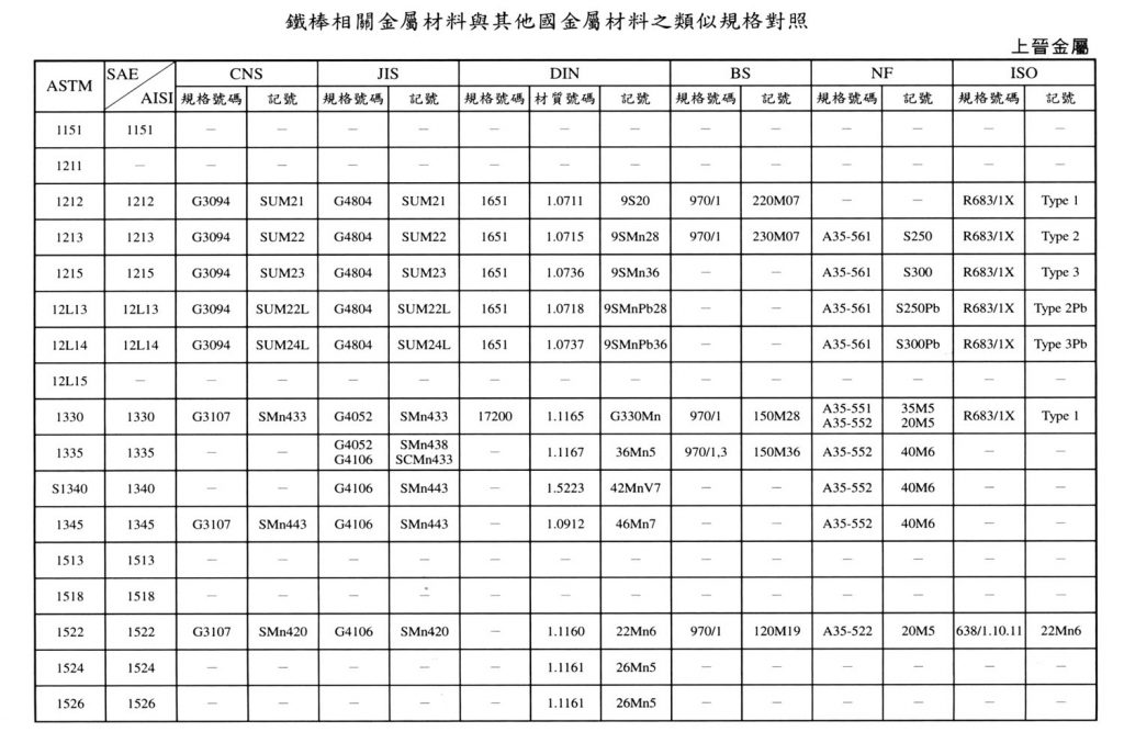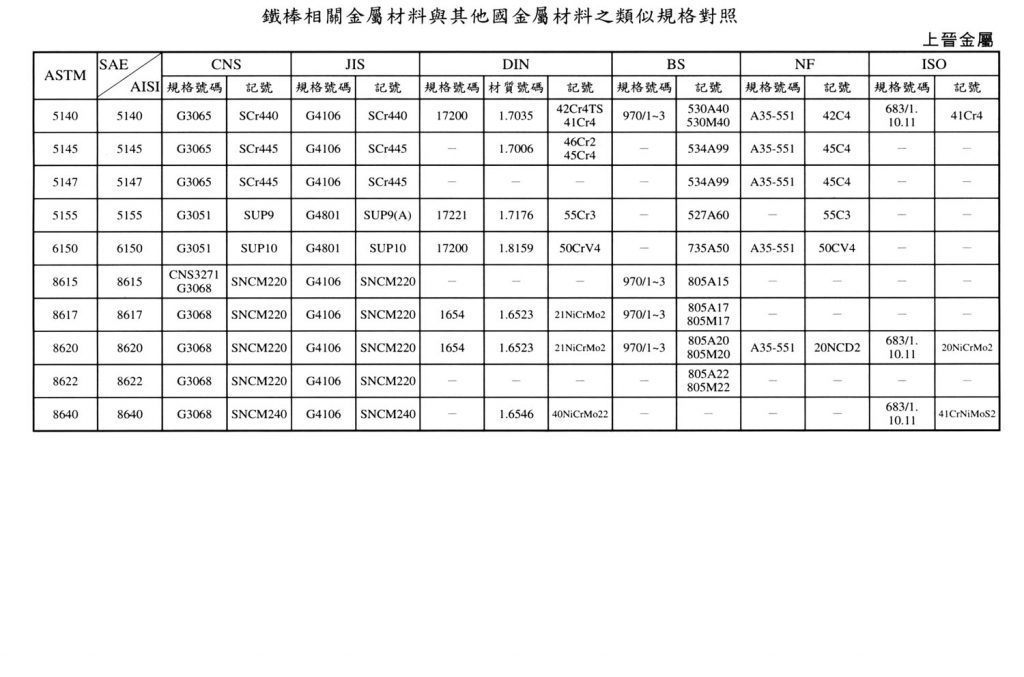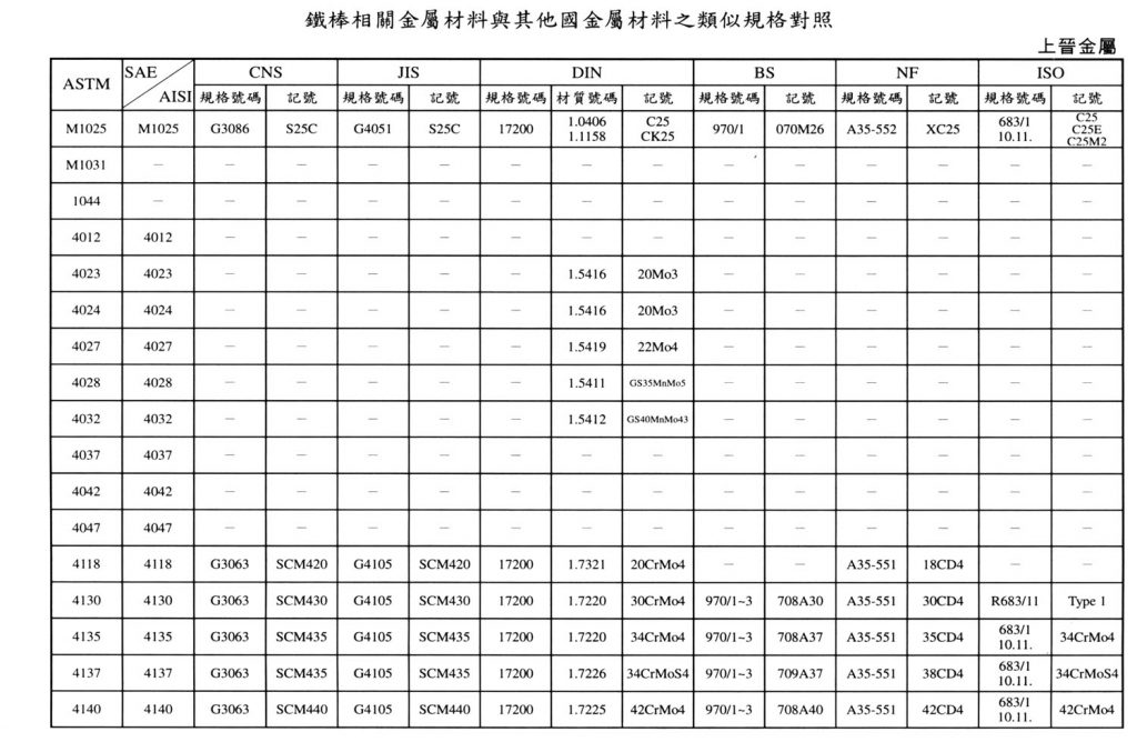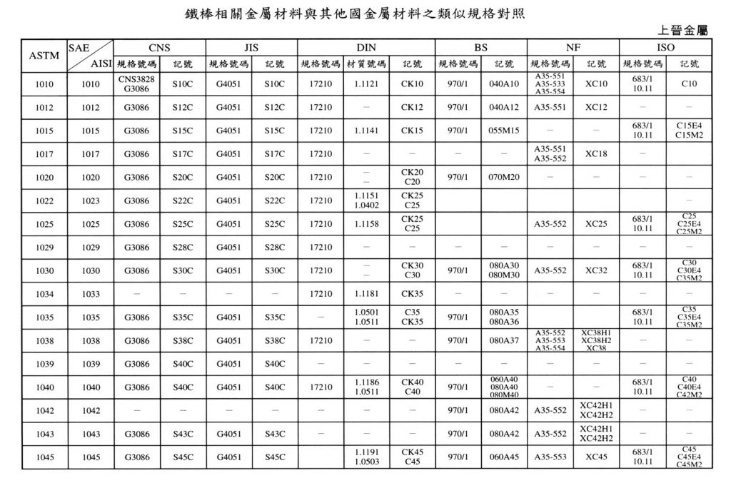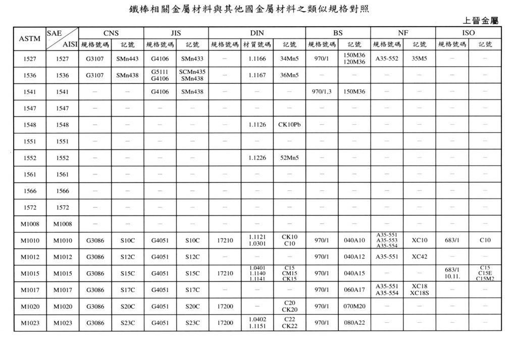 International Material Specification Comparison Click on the image below to view the image in full resolution.