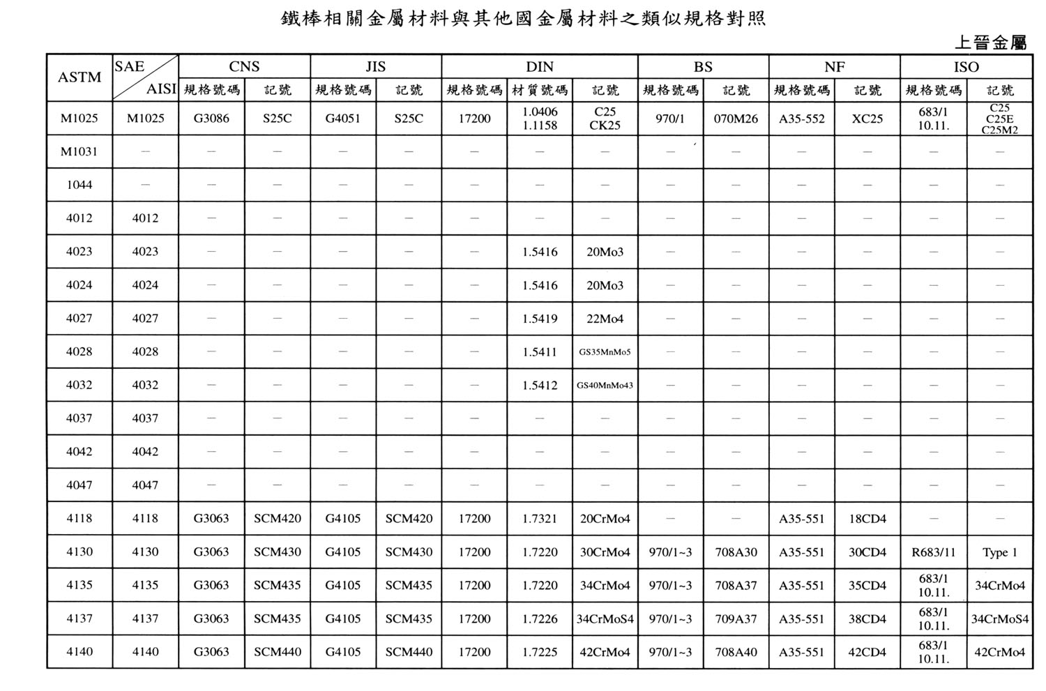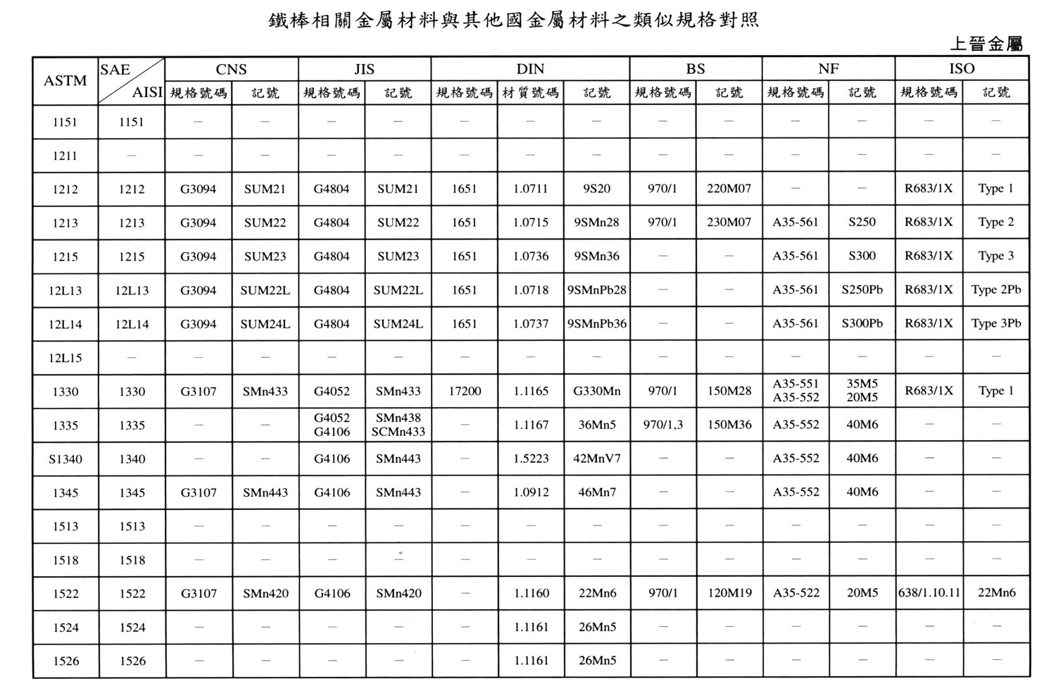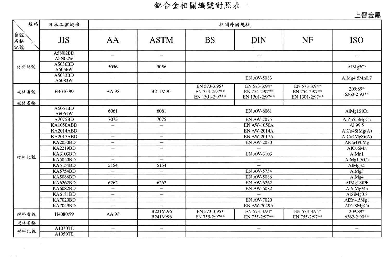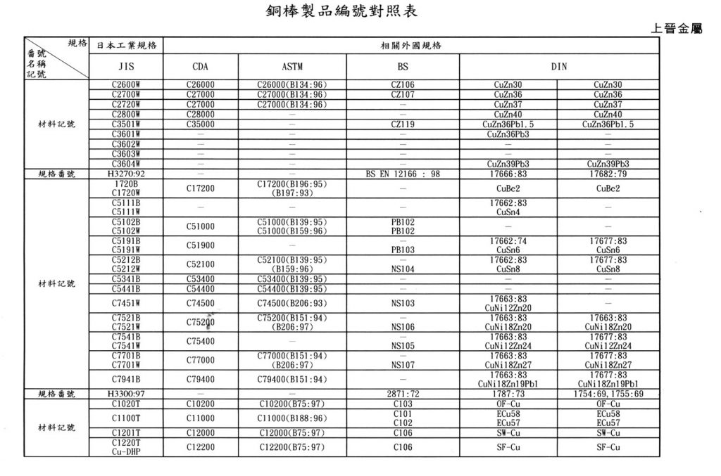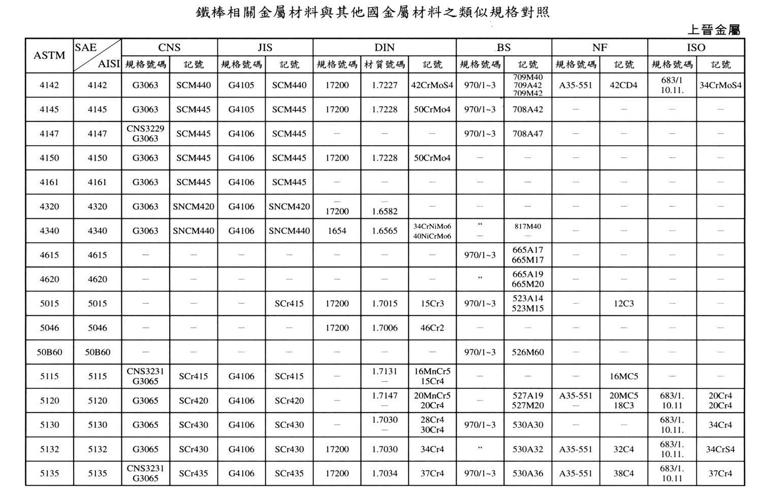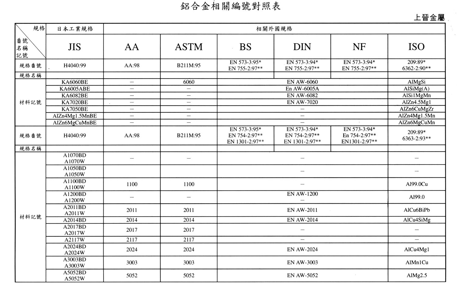 International Material Specification Comparison Click on the image below to view the image in full resolution.
