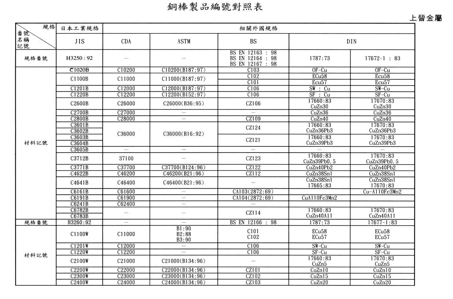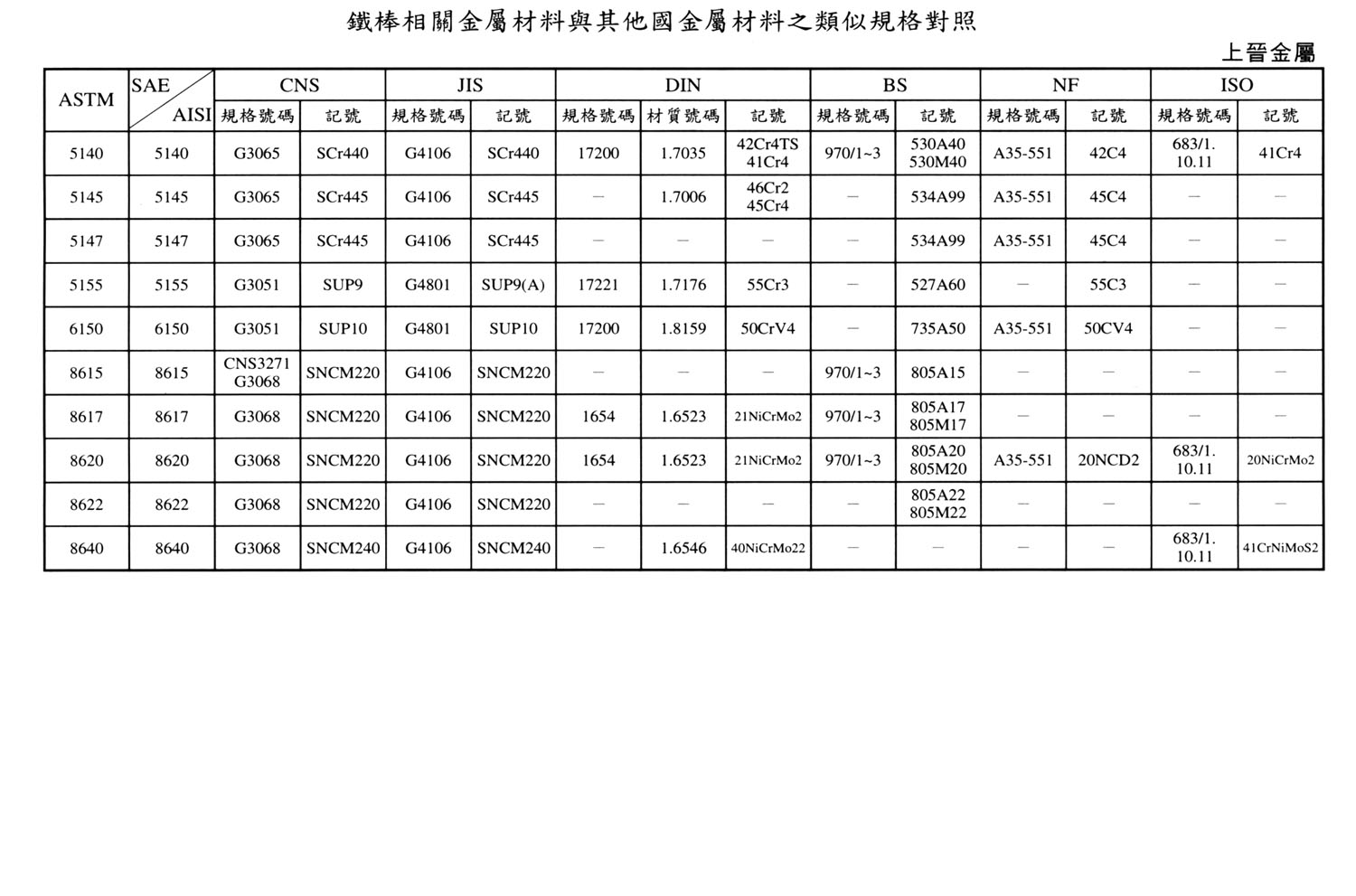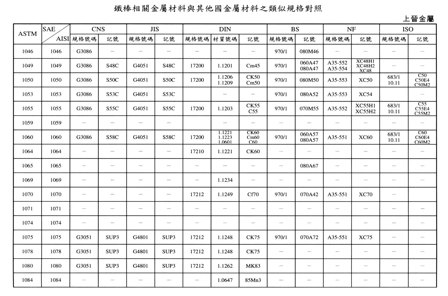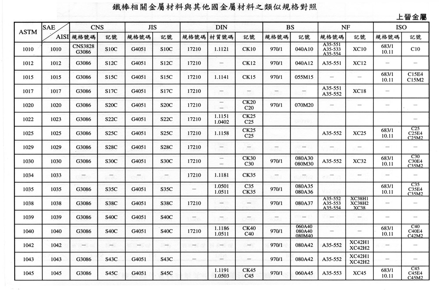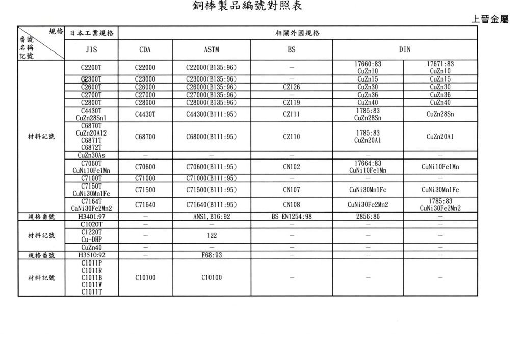 International Material Specification Comparison Click on the image below to view the image in full resolution.